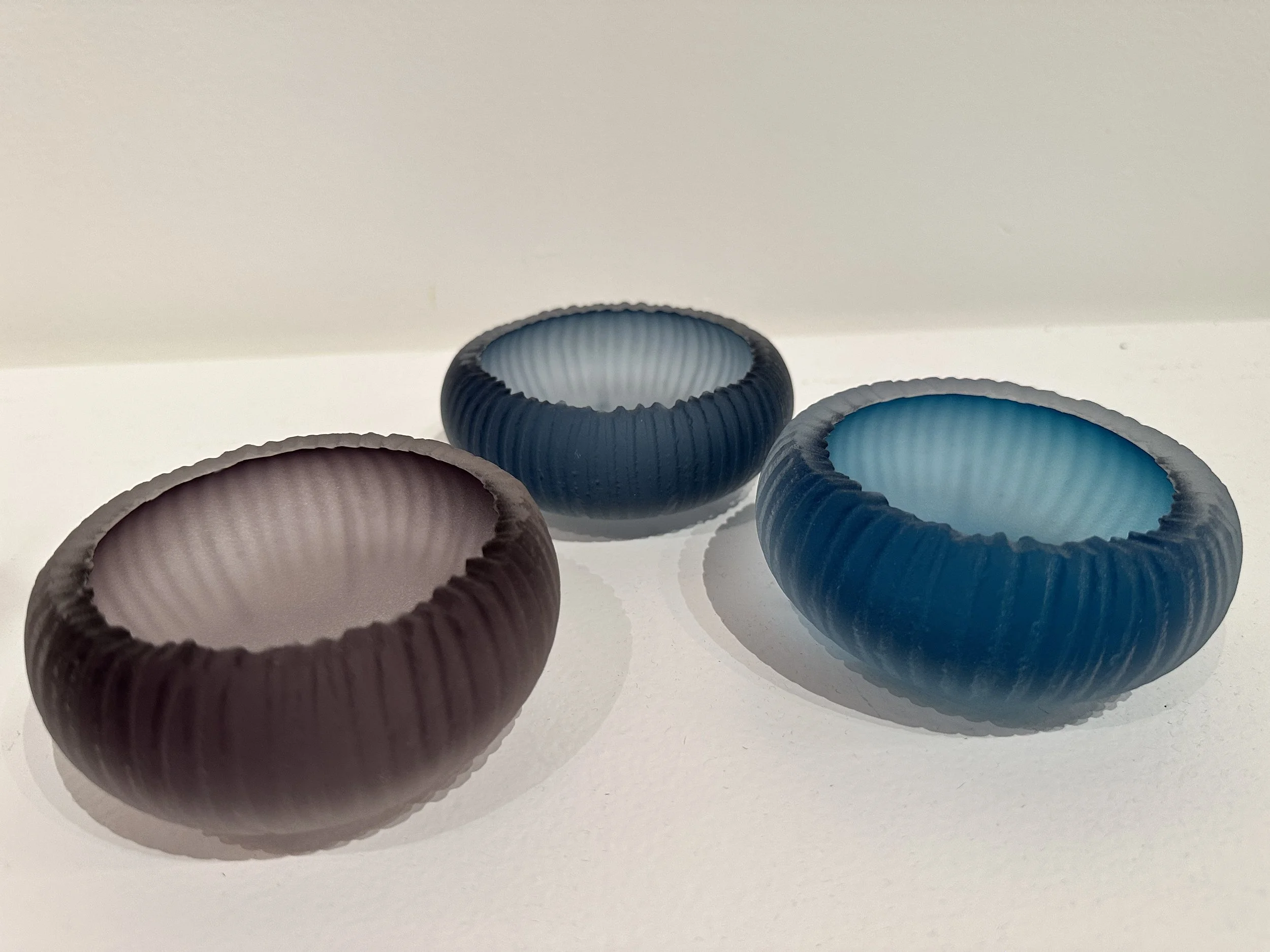 Carved Glass Ring DishesCourtney Downman4 inches Teal, Violet and Steel Blue$95 each Request for Information or Appointment