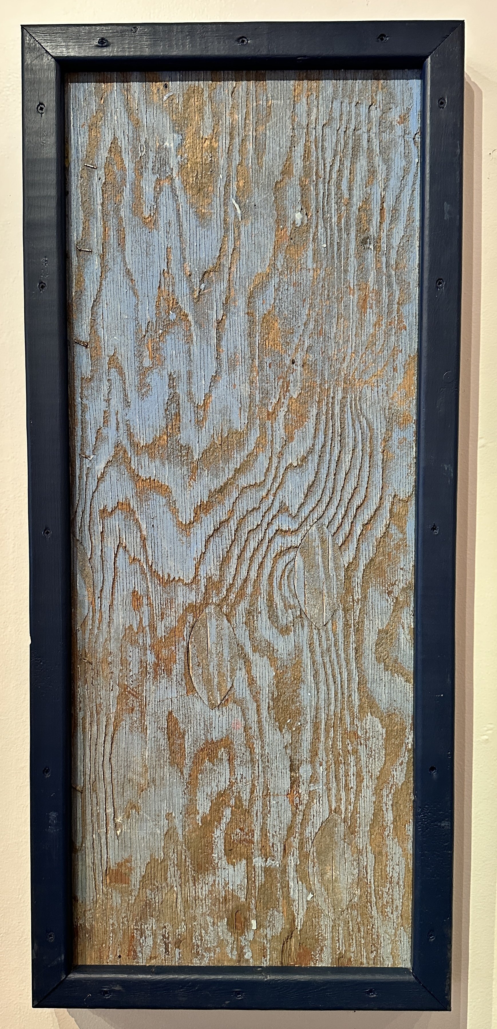 Back in the day, what kid didn't want to head out into the woods and build a Fort? Or even more challenging, the Tree Fort. Growing up out in the west end of Hamilton, we were lucky enough to have that patch of woods that lies just under the 403, now a part of The White Chapel Cemetery, where we built a really nice solid club house on the ground. We even had a real wooden door I carried up Lower Horning on my back from a derelict house on Main St. West. Not so lucky with the Tree Fort though, trying to nail into Sugar Maple Trees was not so easy, lots of bent nails. Years later when I lived on Erie Avenue, I ventured out into the woods, this time entering on Burris St. which ends off Cumberland, right near where the old Life Savers Plant was. No fences, just hopped across the train tracks, and there it was. This beautiful piece of plywood, just barely hanging on up there in an old Crab Apple tree. It took me 20 plus years to finally give it some love, and put the frame on it. If that wood could talk.